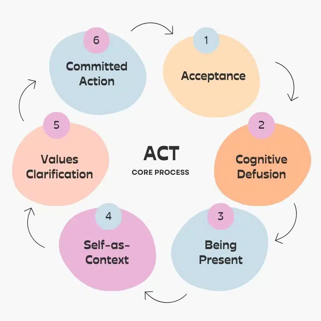 ACT is built around six interrelated processes that foster psychological flexibility and a values-driven life: